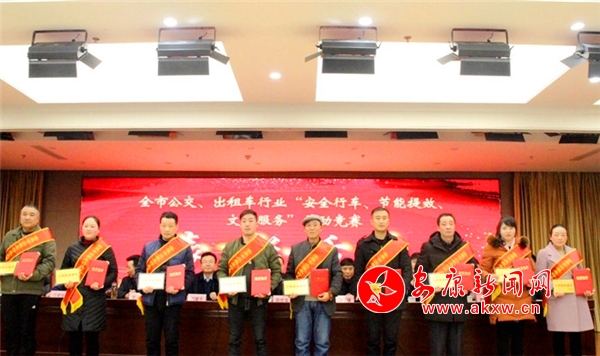安康新聞網訊(記者 鄭運祥)1月25日下午,市交通運輸局、市總工會聯合舉辦全市公交、出租車行業(yè)“安全行車、節(jié)能提效、文明服務”勞動競賽表彰活動,50名公交車駕駛員、45名出租車駕駛員被授予安康市公交、出租車行業(yè)“文明服務標兵”榮譽稱號,并接受表彰。市委常委、副市長劉建平出席活動并講話。