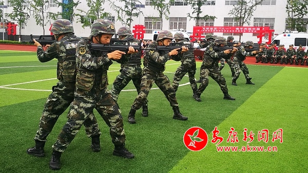 大家近距離觀摩了武警機(jī)動(dòng)中隊(duì)特戰(zhàn)分隊(duì)?wèi)?zhàn)術(shù)、特戰(zhàn)手語(yǔ)、格斗拳、刺殺操、武術(shù)表演,在武警戰(zhàn)士的指導(dǎo)下完成隊(duì)列、操槍法訓(xùn)練,激發(fā)了全體人員對(duì)軍人捍衛(wèi)國(guó)家安全、人民幸福的崇高敬意,激活了大家聚力發(fā)展、追趕超越的信心和決心。