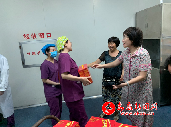 8月2日上午,醫(yī)院紀(jì)委書記杜海云、工會主席王小麗、門診部主任馬吉香一行三人帶著院領(lǐng)導(dǎo)的深切關(guān)懷,深入到醫(yī)療一線的各科門診、后勤一線的門衛(wèi)崗?fù)、鍋爐房、消毒供應(yīng)中心等高溫部門以及高新醫(yī)院、傳染病院和精神病院,開展“夏日送清涼”活動。