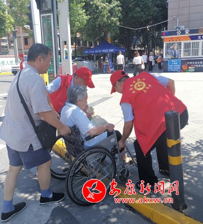 活動中,志愿者們頭頂炎炎烈日,堅守在十字路口的的八個拐角,身穿紅馬甲,手舉“為您文明行為點贊”標識牌,對騎摩托車未帶頭盔、行人闖紅燈、不走斑馬線亂穿馬路等不文明行為主動上前勸導制止。對通過路口行動不便的老人、小孩、殘疾人等需要幫助的人群,主動攙扶,扮演安全護駕使者,護送他們安全通過路口,善意舉動贏得了過往車輛駕駛員的理解與讓行,更贏得了路過市民群眾頷首贊許。ATV安康新聞網