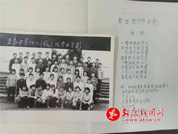 “怎能忘,課堂上,您循循善誘開拓思想;怎能忘,生活中,您無微不至掛肚牽腸……”這是34年前——1985年慶祝全國(guó)第一個(gè)教師節(jié)前夕,安康中學(xué)高中學(xué)生張恒寫給張濤(現(xiàn)任中國(guó)科學(xué)院院士、副院長(zhǎng))、劉淑麗(全國(guó)模范班主任)等老師的詩歌。