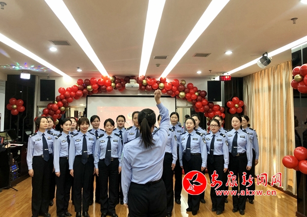 活動在雄壯有力的大合唱《人民警察之歌》中拉開序幕,詩朗誦《新年,你好!》,用詩行傳遞濃濃的節(jié)日祝福;女生小合唱《年輕的朋友來相會》,輕快的旋律,甜美的歌聲,瞬間把大家又拉回了那些青蔥歲月;崔銳利副局長一首《把根留住》獨(dú)唱,聲情并茂,把活動推向高潮;王鵬支隊長書法表演《納福迎新》,筆勢雄奇,姿態(tài)橫生,讓從警的初心從道路向筆尖延伸,即興吹奏《蘆笙戀歌》,蘆笙悠揚(yáng),宛如天籟,令人陶醉;舞蹈《舞有規(guī)行有矩》,將遵規(guī)守法融入舞蹈表演;獨(dú)唱《拉著中華媽媽的手》,婉聲悅耳,情真意切,祝愿祖國母親明天更美好;小合唱《走進(jìn)新時代》,老歌新唱,踏著新時代的東風(fēng)我們整裝再出發(fā);最后,活動在大合唱《我和我的祖國》中落下帷幕。
