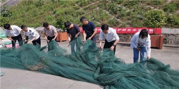 5月22日上午,陜西省農(nóng)業(yè)農(nóng)村廳漁業(yè)漁政局、安康市農(nóng)業(yè)農(nóng)村局在瀛湖海事碼頭聯(lián)合開展禁用漁具及“三無”漁船銷毀活動,集中銷毀了570余副“絕戶網(wǎng)”共1萬余米,銷毀電魚設(shè)備21套。