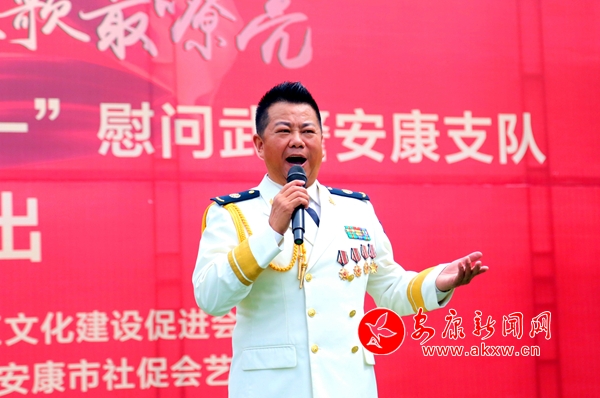 演出在《鼓悅安康》激昂的鼓點聲中拉開帷幕!秿{鄉(xiāng)情歌》一字一句把安康勞動人民的生產(chǎn)勞動、愛情生活、生活智慧表達的淋漓盡致;《為了誰》深情的謳歌了人民子弟兵的英勇無畏、堅強不屈的奉獻精神;《生命之舟》生動形象地演繹了人民子弟兵當洪魔肆虐時,駕駛沖鋒舟上演著“最美逆行”的驚心動魄;紅色故事《毛楚雄血灑東江口》,講述著發(fā)生在解放戰(zhàn)爭中安康寧陜可歌可泣的英雄事跡;《咱當兵的人》喚起了我們保家衛(wèi)國的凌云壯志……舞臺上,歌聲嘹亮,舞姿翩躚。舞臺下,歡笑連連,掌聲雷動,特別是由官兵們帶來的武術(shù)表演,動作連貫,招招精彩,讓在場觀眾看得熱血沸騰,一陣陣喝彩聲將演出推向了高潮。