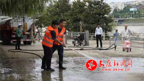 隨著江水回落,漢江公園部分人行步道和公園場地逐漸露出水面,步道上殘留著大量浪渣和堆積的淤泥。黨員及工人們不畏困難,揮舞著鐵鍬、鐵鏟清除淤泥,借助灑水車高壓水槍沖洗地面,一個個干勁十足,用實(shí)際行動踐行共產(chǎn)黨員的責(zé)任與擔(dān)當(dāng)。