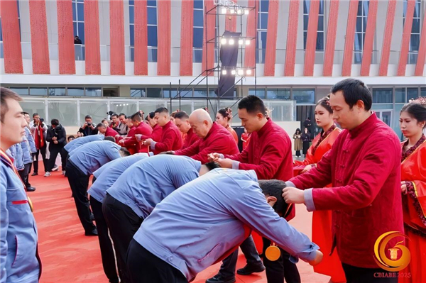 活動現(xiàn)場,九位非遺傳承人師傅為徒弟授予紀念章,徒弟鞠躬致敬,彰顯匠心傳承與品質(zhì)堅守。活動中2025乙巳年封藏紀念酒發(fā)布,白酒專家鐘杰進行了權威解讀,他表示,此紀念酒秉持“糧香,曲香、杏仁香、果香、蜜甜香”的理念,具有口感“醇香典雅、甘潤挺爽”的核心特征,是封壇中的優(yōu)中選優(yōu),品質(zhì)上乘之作。