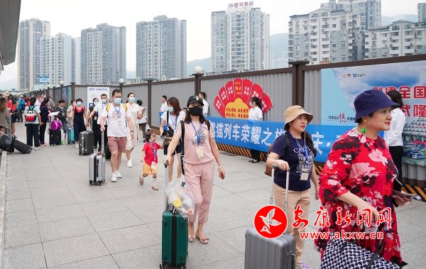 9月14日,由成都始發(fā)的Y582次“熊貓專列”,搭載著230余名游客,順利抵達武隆火車站,開啟兩天一晚的世界自然遺產(chǎn)之旅。這也是新一輪疫情后,首列從四川成都發(fā)往重慶武隆的跨省游專列,標志著武隆旅游業(yè)復蘇,并由此進入“快車道”。