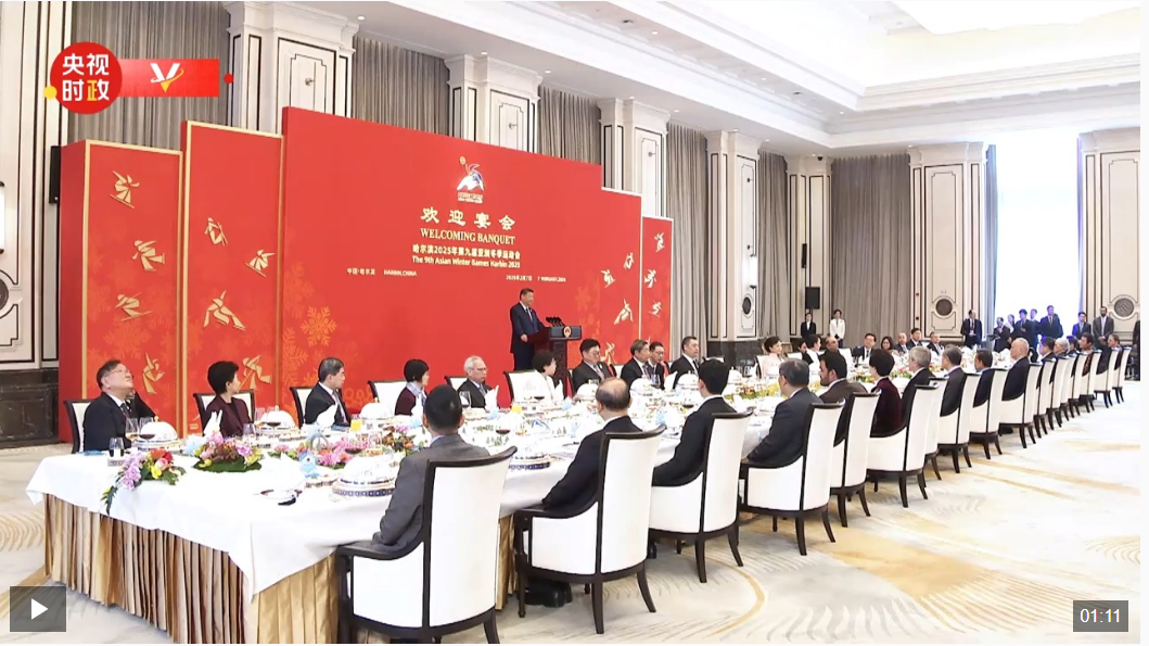 2月7日中午,國(guó)家主席習(xí)近平和夫人彭麗媛在黑龍江省哈爾濱市太陽(yáng)島賓館舉行宴會(huì),歡迎來(lái)華出席哈爾濱第九屆亞洲冬季運(yùn)動(dòng)會(huì)開幕式的國(guó)際貴賓。
