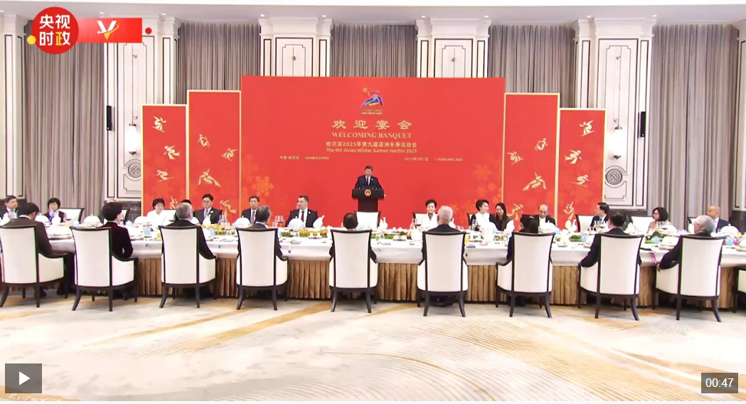 2月7日中午,國(guó)家主席習(xí)近平和夫人彭麗媛在黑龍江省哈爾濱市太陽(yáng)島賓館舉行宴會(huì),歡迎來(lái)華出席哈爾濱第九屆亞洲冬季運(yùn)動(dòng)會(huì)開幕式的國(guó)際貴賓。