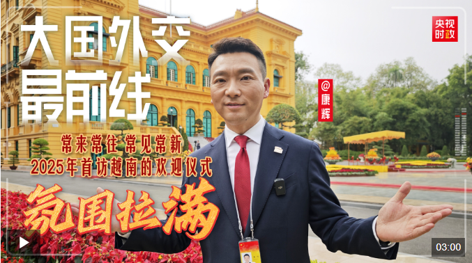 黃色的標(biāo)志性建筑,交相輝映的五星紅旗和金星紅旗,手持中越兩國(guó)國(guó)旗的小朋友……有沒(méi)有一種熟悉又親切的感覺(jué)?時(shí)隔一年多,習(xí)近平再次訪越,恰似走親戚、串門(mén)般自然?旄“大國(guó)外交最前線”的腳步,一同前往歡迎儀式現(xiàn)場(chǎng),感受這份熱烈與友好!