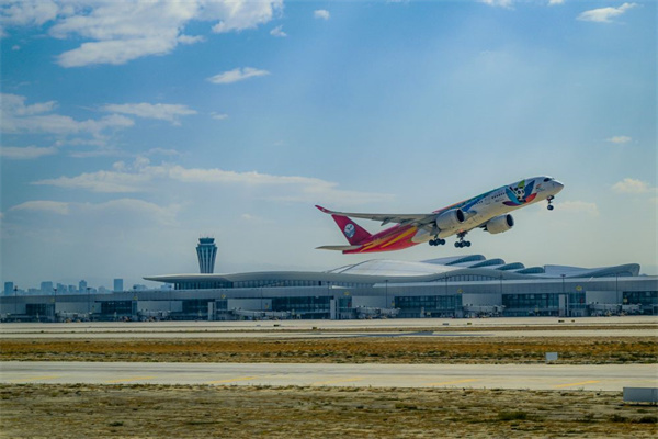 9月15日,一架飛機(jī)從烏魯木齊天山國(guó)際機(jī)場(chǎng)起飛。新華社記者 陳朔 攝Xzp安康新聞網(wǎng)