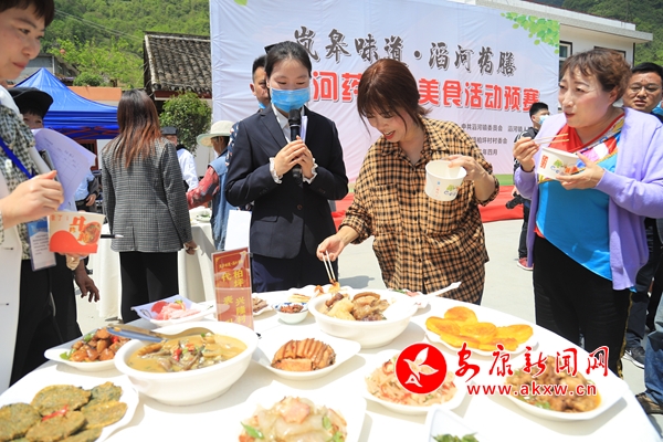 暢游清幽藥谷之鎮(zhèn),品嘗農(nóng)家藥膳美食;顒(dòng)現(xiàn)場(chǎng),人潮涌動(dòng),十分熱鬧。山藥燒排骨、槐花雞蛋、青蒿牛肉餅、香酥芍藥花、蠻子藥炒雞蛋……一道道現(xiàn)場(chǎng)烹飪制作的美食,極具本土特色,令人垂涎三尺……讓人“食”指大動(dòng),引得近千名村民和外地游客“味蕾大開(kāi)”,爭(zhēng)相品嘗,舌尖上的鄉(xiāng)愁和美景第一次在這個(gè)四月深刻交融。
