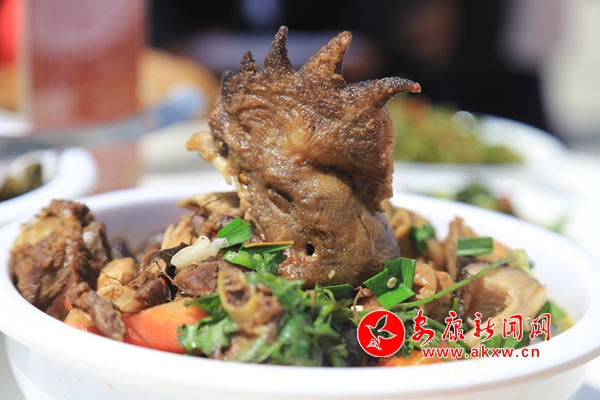 切食材、調(diào)配料……比賽現(xiàn)場(chǎng),爐火熊熊,刀叉飛舞,熱氣蒸騰,各參賽隊(duì)伍的當(dāng)家大廚身著工作服,頭戴廚師帽,選手們摩拳擦掌,拿出了看家本領(lǐng),各自施展烹飪絕技,鍋碗瓢盆的悅耳聲響和人們的歡聲笑語(yǔ)融合在一起,廚師們嫻熟地制作著菜品,鍋碗瓢盆數(shù)次的端起放下,猶如一曲曲動(dòng)聽(tīng)的交響樂(lè)。不一會(huì)兒工夫,干煸羊腳、山藥燒排骨……一道道美食在“大廚們”的精心烹飪下出鍋了。他們將家鄉(xiāng)的烹飪手法與本地食材相結(jié)合,創(chuàng)新研發(fā)了許多新式菜肴。讓人覺(jué)得這不僅是一場(chǎng)美食盛宴,美食天下,更是一場(chǎng)視覺(jué)盛宴。