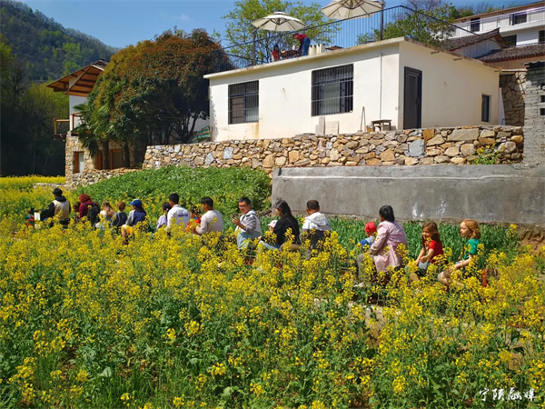 漁灣村位于寧陜縣城以南,距離縣城約11公里。這里依山傍水,景色秀美,已建成鹿柴山集精品民宿、稻田小火車等項(xiàng)目,并打造出朱鹮保育稻田、陜南鄉(xiāng)村田園等自然人文景致,有著豐富的生態(tài)資源和深厚的文化底蘊(yùn)。清明時節(jié),正是油菜花盛開的季節(jié),田間地頭金黃一片,吸引了眾多游客前來觀賞。
