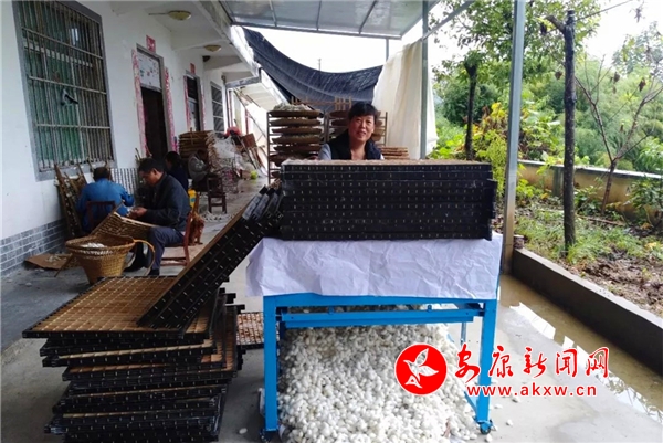 “通過幾季養(yǎng)蠶比較,用快速取繭機(jī)取100個塑框木質(zhì)方格蔟上的蠶繭也就40多分鐘,而100個紙質(zhì)方格簇10來個人摘繭最快也要一天半,對比起來快速取繭機(jī)太省時省力高效了。”蔡明勇對快速取繭機(jī)很滿意,他打算來年將家中的方格簇進(jìn)行大改良,全部用上塑框木質(zhì)方格蔟。
