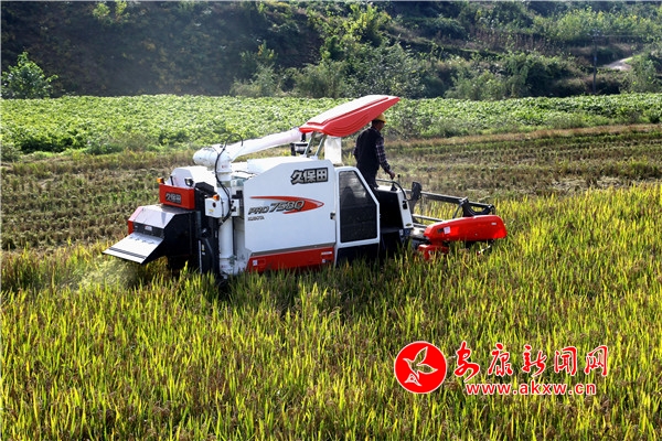 待糧艙裝滿,鄭書鵬按動電鈕,合作社的工人迅速拿著編織袋對準出糧口,金黃的稻子從艙內(nèi)傾斜而出,“嘩啦啦”翻滾進口袋,不一會兒袋子便鼓了起來,看著飽滿的谷粒,鄭書鵬忍不住捏起幾粒搓了皮塞到嘴里咀嚼起來。“今年合作社買了一臺收割機,小半天不到幾塊不成型的小田已經(jīng)全部收割完。以前靠人工收割,全村出動要忙活一個周才能收完,現(xiàn)在有了收割機,還能為周邊市縣的種植戶提供服務。”良田村合作社負責人鄭書鵬喜滋滋地說。