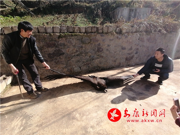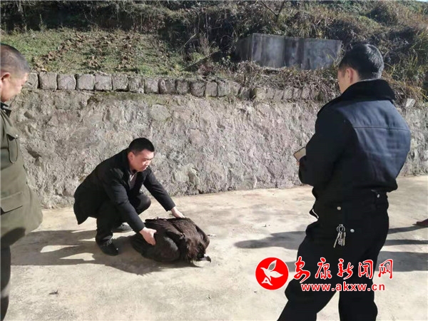 當日中午,工作隊員在村內(nèi)發(fā)現(xiàn)一只疑似受傷跌落的“大鳥”,隊員隨即與鎮(zhèn)農(nóng)業(yè)綜合服務站和縣林業(yè)部門取得聯(lián)系。經(jīng)工作人員初步鑒定,該鳥為禿鷲,屬國家二級保護動物。因在本地較為稀有,加之此鳥已無法獨立活動,工作人員將其帶回了林業(yè)部門做進一步檢查,待康復后,將把它放歸山林。