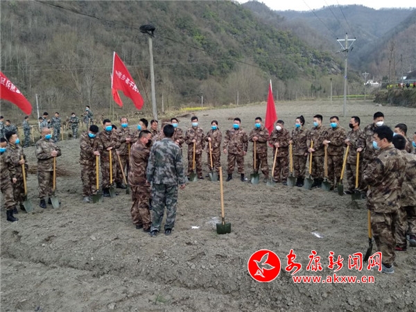 本網(wǎng)訊(通訊員 武杰)3月12日上午,陽光明媚,石泉縣委常委、人民武裝部部長陳曉軍及縣人民武裝部干部、各鎮(zhèn)人武專干來到中池鎮(zhèn)筷子鋪村,開展種植擁軍樹活動,義務為筷子鋪園區(qū)栽種蜂糖李。