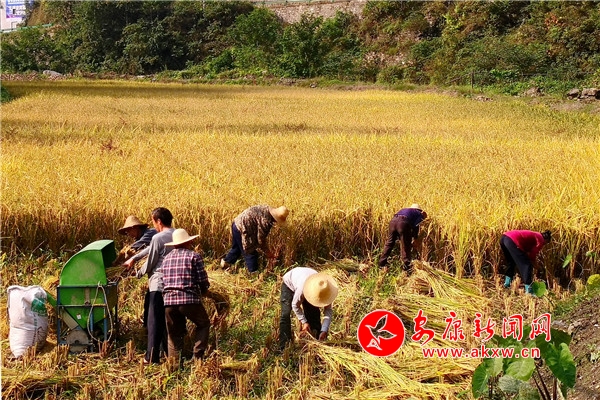 近日,石泉城關(guān)鎮(zhèn)4500畝水稻陸續(xù)進(jìn)入收割期,農(nóng)戶門搶抓晴好天氣,進(jìn)行水稻收割、搬運、貯藏,雷興村、絲銀壩村、黃荊壩社區(qū)等村(社區(qū))也首次采用機器代替手動收割,確保確保秋糧顆粒歸倉。(董長松/攝)rdf安康新聞網(wǎng)