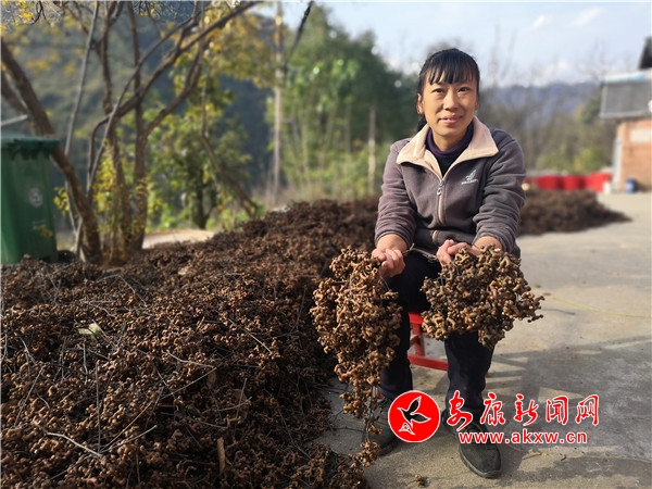 余順勇是廟梁村三組的釀酒大戶,有著16年的釀酒手藝,夫妻倆每年都要新栽植一些拐棗苗,如今能產(chǎn)拐棗的大樹就有140余棵。夫妻倆在家務(wù)農(nóng)釀酒,家里2位老人在縣城開店賣酒,因?yàn)榫葡愦颊麣獯,生意興隆。今年,余順勇雇傭了7個(gè)勞力,用了38個(gè)工,打了9天拐棗,才做足了前期釀酒準(zhǔn)備。