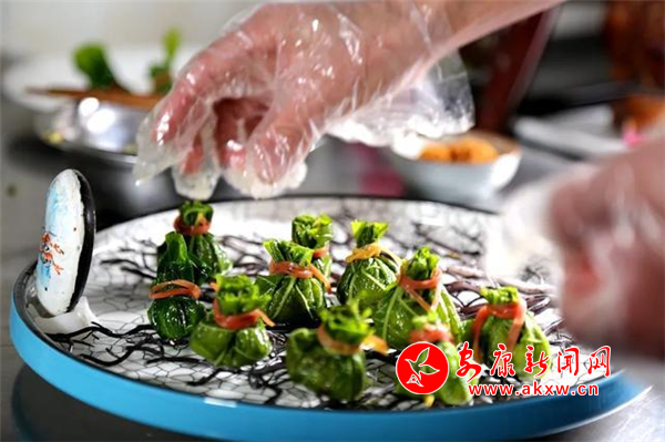 在景區(qū)內(nèi)有一種特色蠶桑宴——“炸桑葉、涼拌桑葉、桑葉丸子湯、桑葉漿水面、桑葉餃子饅頭、桑葉涼粉、桑葚甜酒、炸蠶蛹、桑葉炒雞蛋、桑葉茶、桑葚酒、桑園辣子雞……”幾十道“桑葉”主題特色美食讓游客們垂涎欲滴。一盤(pán)炸桑葉10來(lái)片,能賣(mài)到18元,平均一片就達(dá)到近兩元,其他菜品單價(jià)也是28-88元之間不等,與1200斤桑葉喂養(yǎng)一張蠶賣(mài)2500元的好價(jià)錢(qián)相比較,經(jīng)濟(jì)效益要高幾百倍。