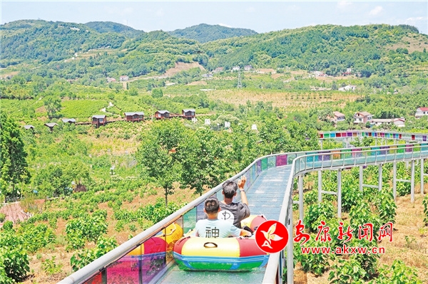 游客在明星村體驗(yàn)桑海玻璃滑道