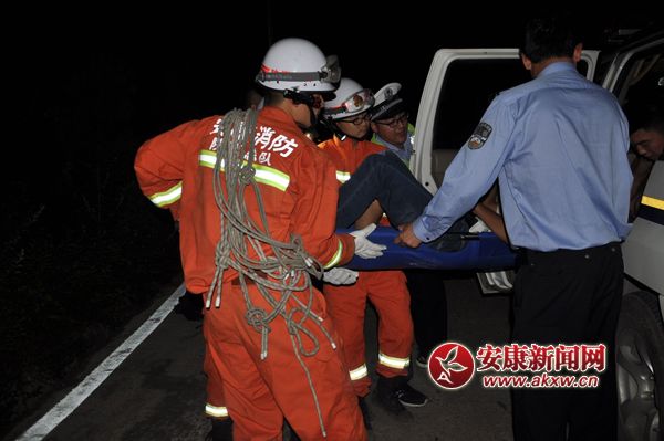 摩托車失控三人墜崖 旬陽消防緊急救援