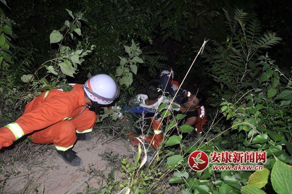摩托車(chē)失控三人墜崖 旬陽(yáng)消防緊急救援