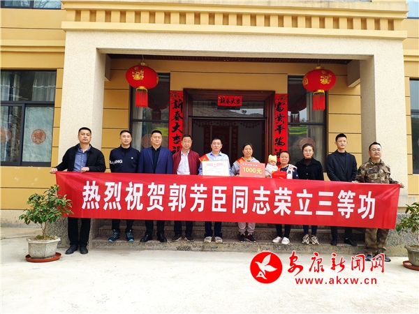 本網(wǎng)訊(通訊員 馬安奎)3月14日,旬陽市退役軍人事務(wù)局和關(guān)口鎮(zhèn)人民政府工作人員一起前往泥溝村一組現(xiàn)役軍人郭芳臣家中,為其家屬送上了“三等功”喜報及慰問金。