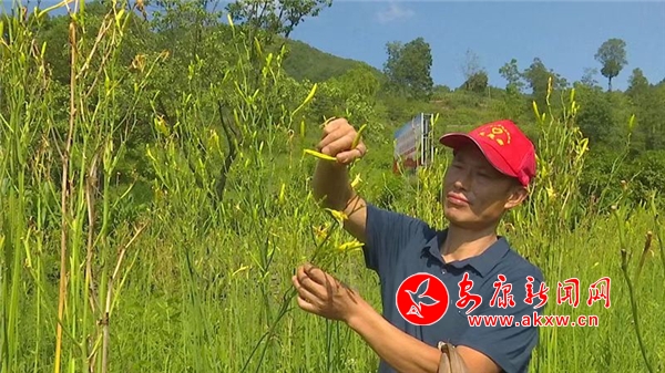 采摘現(xiàn)場,10余名村民一字排開,正緊張忙著采摘。據(jù)了解,黃花菜的花期只持續(xù)一個月左右,由于花期集中,采摘任務(wù)量大,每到這個時候,都要雇附近村民前來幫忙,有效解決了村上剩余勞動力增收的問題。