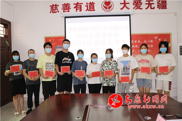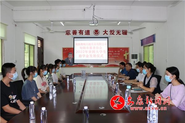 本網訊(通訊員 龔成麗)8月24日,陜西翱翔天越實業(yè)有限公司聯(lián)合旬陽市慈善協(xié)會舉行了2022年貧困大學生助學金發(fā)放儀式,F(xiàn)場為13名品學兼優(yōu)、家庭困難的學生每人發(fā)放助學金4000元。