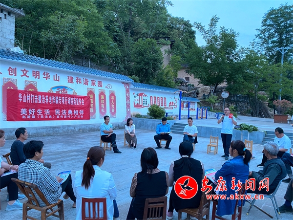 趙灣鎮(zhèn)華山村召開院落群眾會,宣講民法典。uhn安康新聞網(wǎng)
